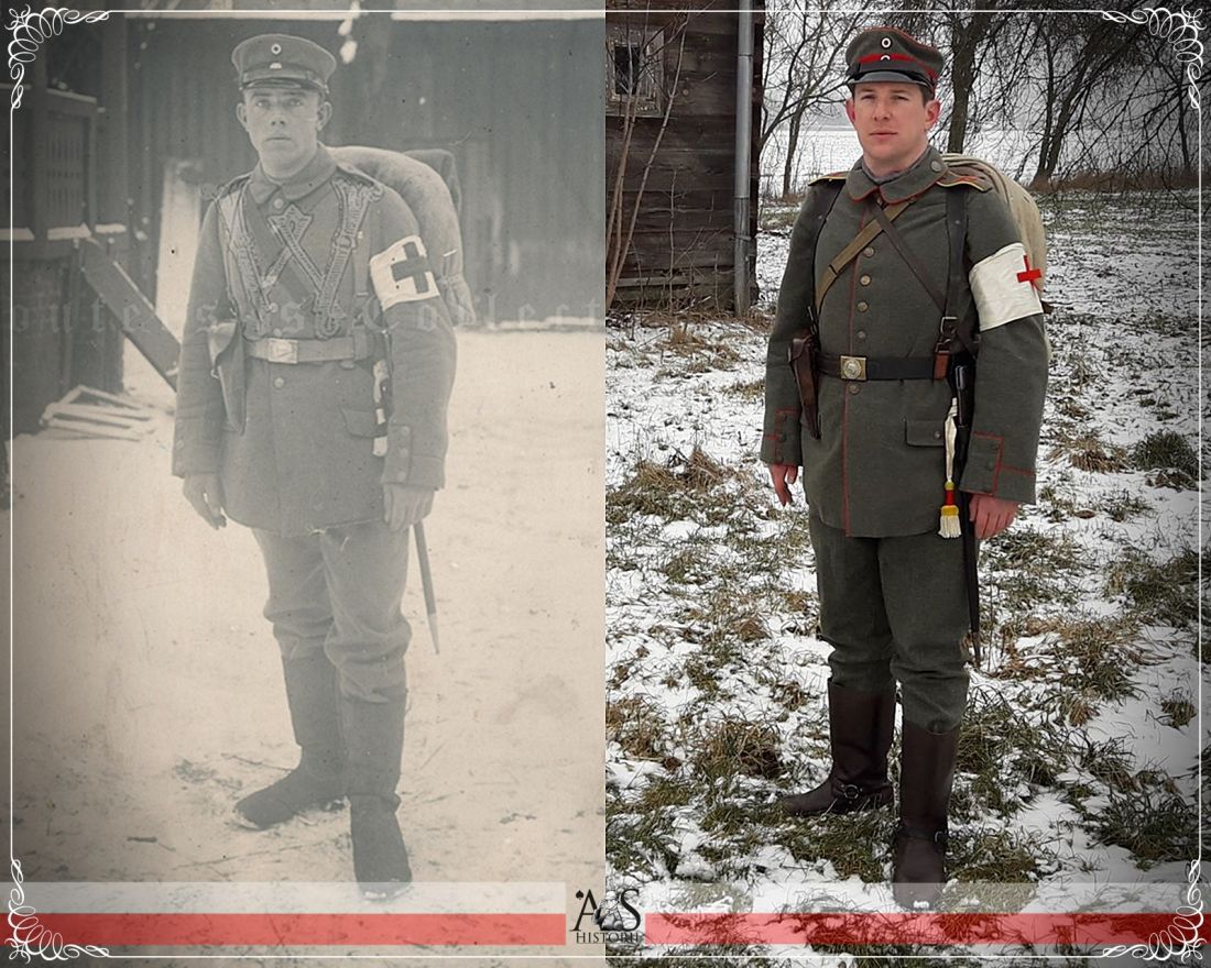 Witajcie, dzisiaj uchylę kolejnego rąbka projektu nad którym pracuję od wielu miesięcy. Jest to sylwetka historyczna tzw. Krankenträger, co w wolnym tłumaczeniu oznacza Noszowego, jednakże nie ma odpowiednika w Wojsku Polskim. Niniejsza sylwetka bezpośrednio bazuje na fotografii obok, wykonanej w marcu 1915 roku.